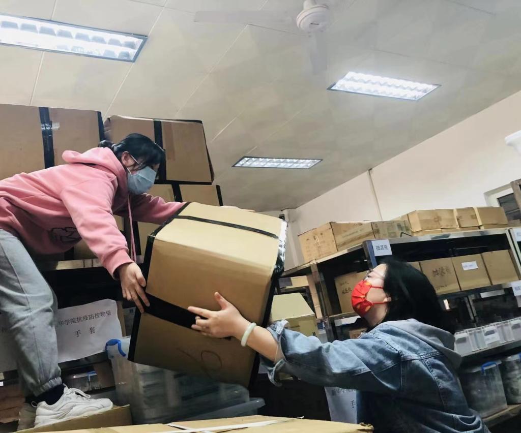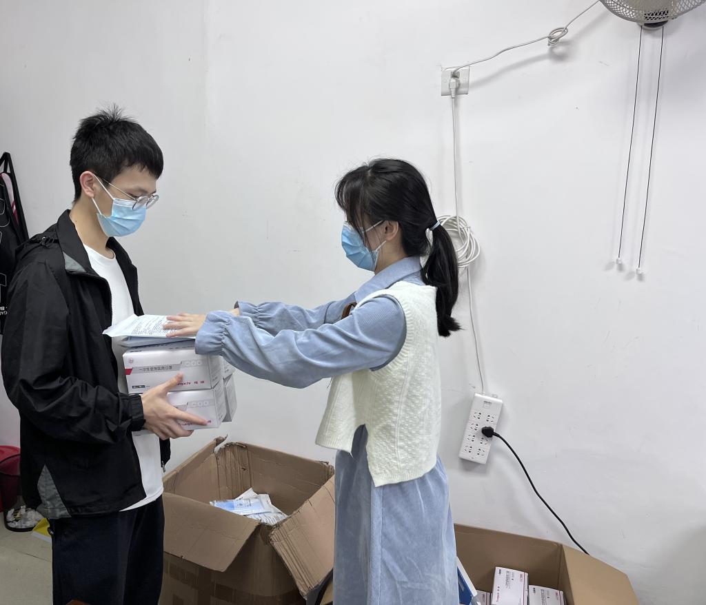 广州校区发放防疫口罩现场