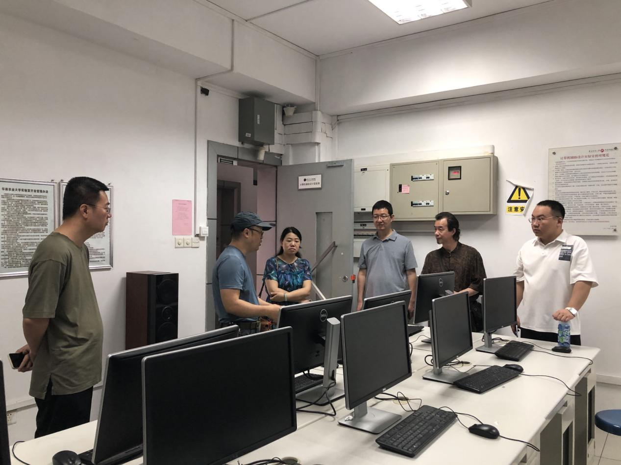 调研组在华南农业大学艺术学院实验室考察